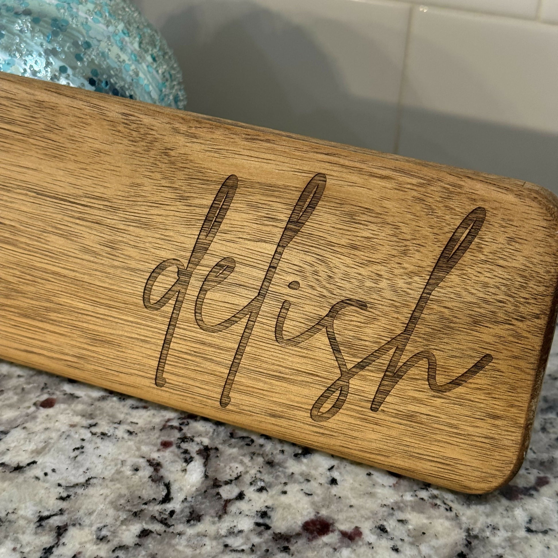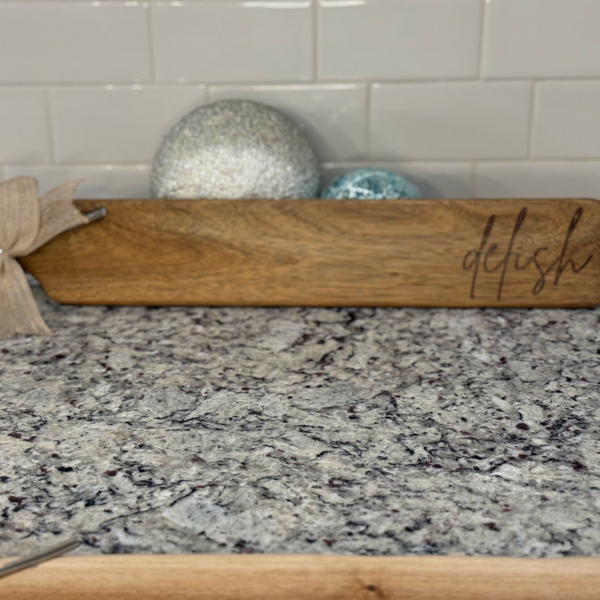 Made with a food-safe finish, this board is ideal for displaying appetizers and cheese, as well as for quick prep work at the bar or in the kitchen. An elegant serving option for your family and friends.