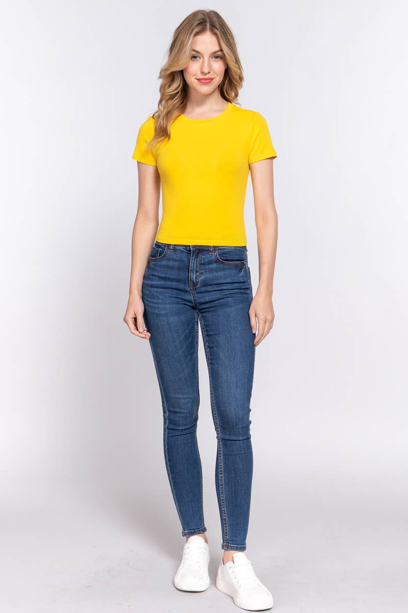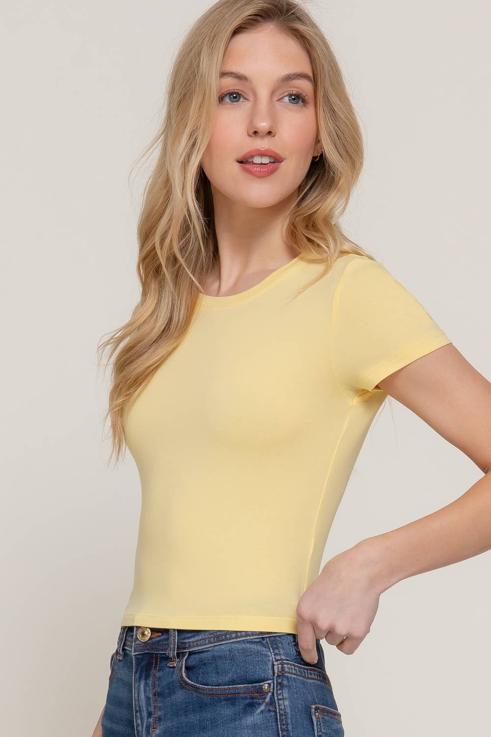 FITTED SHORT SLEEVE CREW NECK CROP TOP Fabric Content: 95% COTTON 5% SPANDEX